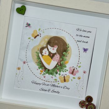 Celebrate a first Mother's Day with a thoughtful and unique gift - a personalised handmade frame! This special gift is the perfect way to commemorate this milestone occasion. Handcrafted with care, this frame can be customised with the new mother's name or a heartfelt message. Show your love and appreciation for the new mother in your life with this meaningful and beautiful gift. Perfect for displaying in any home or office, this frame is a wonderful reminder of the joy of becoming a mother.
