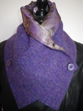 This tweed cross over cowl scarf will keep you snug and warm. It has front button fastening.