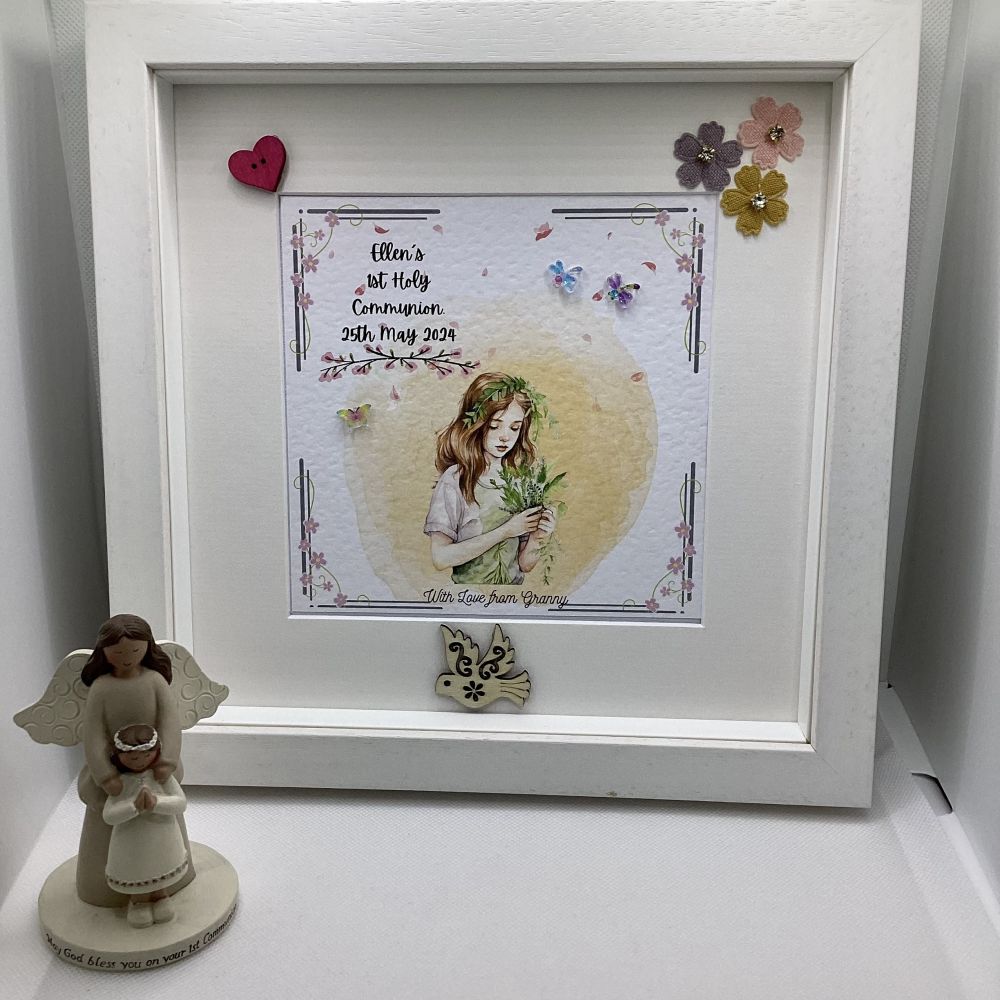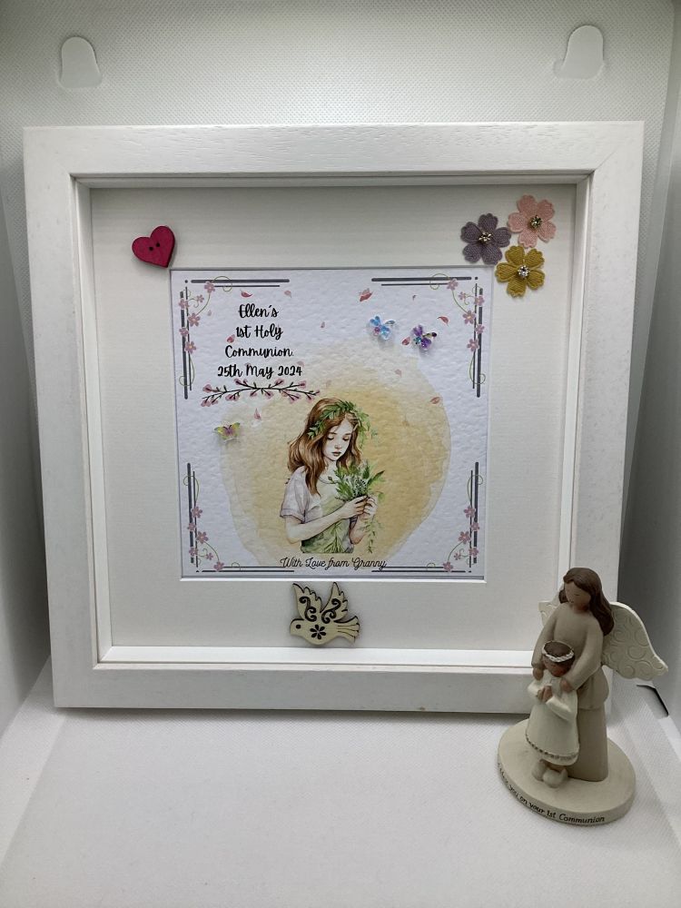 Personalised Communion photo album. Scrapbook keepsake book and personalised frame. First Communion gift set.