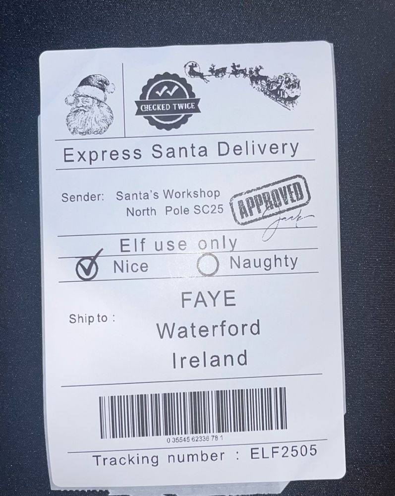 Please use box provided to enter name and address details for the Santa Shipping Label